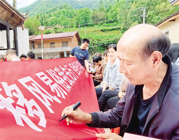 近日,漢濱區(qū)葉坪鎮(zhèn)在慶祝中國共產黨成立104周年活動現場,開展“移風易俗我先行 拒絕升學宴請風”簽名和宣講活動。 胡子新 攝