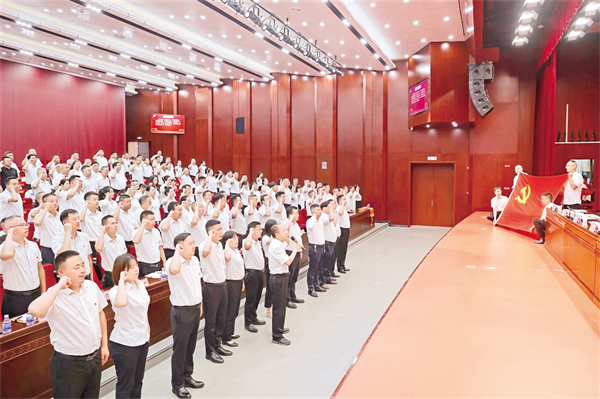 6月29日,漢濱區(qū)農業(yè)農村局全體黨員重溫入黨誓詞,慶祝中國共產黨成立104周年。周濬 攝