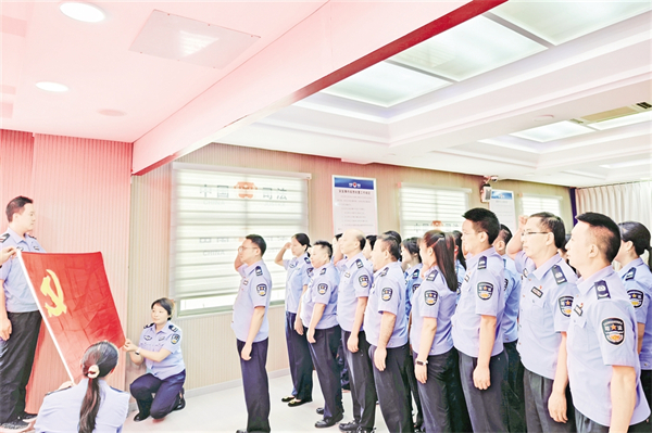 6月26日,紫陽縣司法局組織機關黨支部黨員、局機關及下屬單位干部職工開展“重溫入黨誓詞 汲取奮進力量”主題黨日活動。葉明星 攝