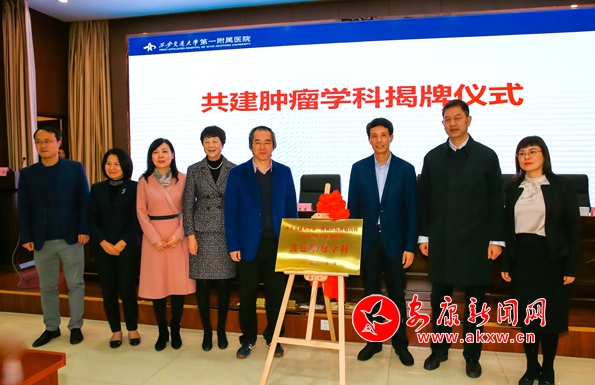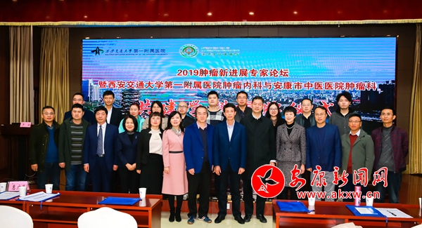 本網(wǎng)訊 (通訊員 嚴(yán)麗 奚穎)11月1日上午,2019腫瘤新進(jìn)展專家論壇暨西安交通大學(xué)第一附屬醫(yī)院腫瘤內(nèi)科與安康市中醫(yī)醫(yī)院腫瘤科共建學(xué)科揭牌儀式在安康舉行。安康市保健辦主任陳少甫出席揭牌儀式并致辭。西交大一附院腫瘤內(nèi)科李恩孝主任、楊謹(jǐn)主任、姚煜主任等專家教授,安康市中醫(yī)醫(yī)院李東波副院長、腫瘤科主任嚴(yán)麗及團(tuán)隊(duì)參加儀式。李恩孝代表一附院腫瘤內(nèi)科與市中醫(yī)醫(yī)院腫瘤科嚴(yán)麗簽署了共建腫瘤學(xué)科協(xié)議,并為兩院共建學(xué)科揭牌。
