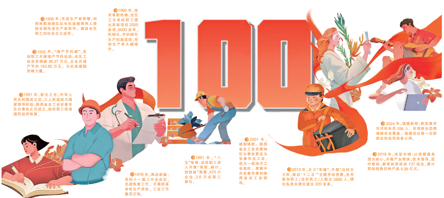 2025年,是全國總工會成立100周年,作為工人階級和廣大勞動群眾的堅強后盾,全國總工會為我國的社會進步和經(jīng)濟發(fā)展做出了不可磨滅的貢獻。安康工運事業(yè)從1925年漢水畔第一聲“勞工萬歲”的吶喊,到深度參與三線建設、脫貧攻堅、生態(tài)經(jīng)濟等重大戰(zhàn)略,再到新時代百萬職工投身幸福安康建設的鏗鏘步履,始終與黨的事業(yè)血脈相連,與城市發(fā)展同向同行。