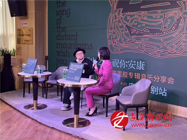 分享會由安康市融媒體中心主持人王倩擔(dān)任主持,她以簡潔有力的開場,引出本次活動的核心人物——被譽為“西北民謠詩人”的陳小虎。陳小虎登臺后,首先與主持人共同展開“人與城”的深度藝術(shù)對談,他分享了《祝你安康》的創(chuàng)作契機,并闡述了在數(shù)字時代堅持制作黑膠專輯的文化意義。