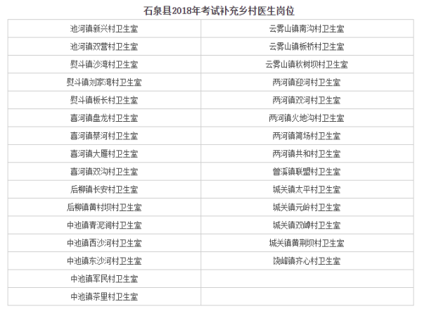安康新聞網(wǎng)訊 根據(jù)《安康市衛(wèi)生和計(jì)劃生育局關(guān)于印發(fā)安康市2018年考試補(bǔ)充鄉(xiāng)村醫(yī)生實(shí)施方案的通知》(安衛(wèi)計(jì)發(fā)〔2018〕26號(hào))精神,石泉縣決定在全縣范圍內(nèi)定崗(附件1)公開(kāi)招考補(bǔ)充一批鄉(xiāng)村醫(yī)生,F(xiàn)公告如下: