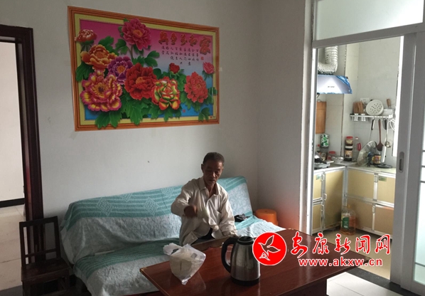 20多年來(lái),好強(qiáng)的“鐵漢子”為了一對(duì)女兒未再娶妻,他含辛茹苦,一把屎一把尿,從一個(gè)壯年漢既當(dāng)?shù)之?dāng)媽到兩鬢斑白的七旬老漢,硬是把兩個(gè)女兒拉扯著上學(xué)長(zhǎng)大直至出嫁。兩間土面墻的房子也在歲月的雨沖日曬中嚴(yán)重裂縫,風(fēng)雨天屋子里還得擺上幾個(gè)盆盆罐罐接雨水。子孫們逢年過(guò)節(jié)回來(lái)看他時(shí),晚上連個(gè)睡覺(jué)的地方都沒(méi)有。兩個(gè)女兒都以務(wù)農(nóng)為生,也無(wú)力改變他的生活條件。