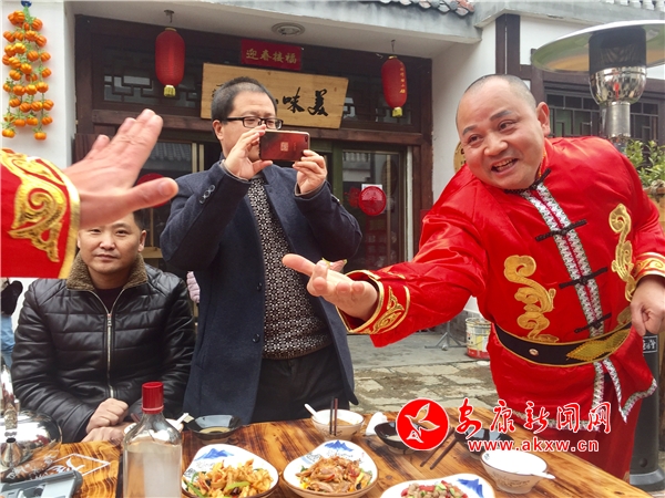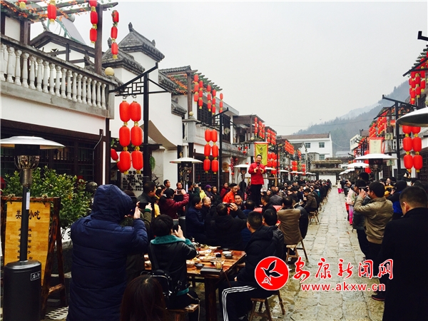 安康新聞網(wǎng)訊(記者張喬) 12月28日,石泉縣后柳鎮(zhèn)長街上,32桌庖湯宴開席,游客和當(dāng)?shù)厝艘黄鸩氯、喝酒、吃肉,提前享受濃濃的年味。這只是2019年石泉庖湯會(huì)的預(yù)演,2019年1月12日(臘月初七)石泉第七屆漢水庖湯會(huì)將正式開吃。
