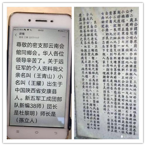 她們記得很清楚,父親后半生一直念叨的事情就是想回家,回到祖籍陜西安康落葉歸根,但是這個(gè)愿望一直沒有實(shí)現(xiàn)。父親名叫王清山,是陜西安康人,13歲的時(shí)候毅然決然地加入遠(yuǎn)征軍,隨軍入緬甸抗戰(zhàn),而這一走沒想到就是一輩子再也沒有回來過。