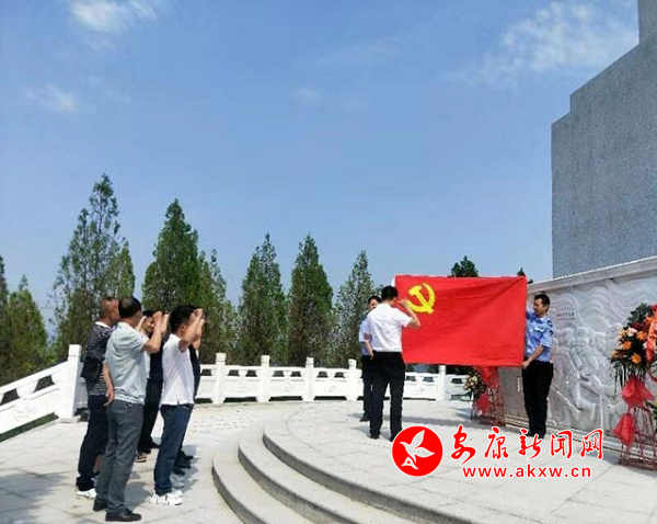 在革命烈士紀(jì)念碑前,支部書記康禮峰帶領(lǐng)全體黨員干部面向烈士紀(jì)念碑和黨旗莊嚴(yán)宣誓,重溫入黨誓詞,不忘入黨初心,增強黨性觀念。深切緬懷革命前輩,感受紅色經(jīng)典,傳承紅色精神。