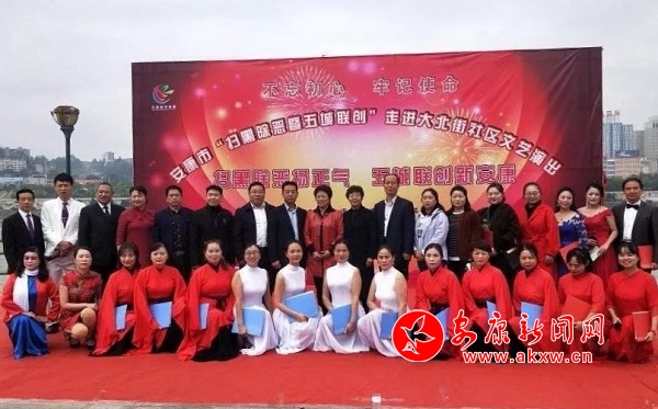 整臺(tái)演出采用舞蹈、獨(dú)唱、小品、朗誦、快板等多種形式,相聲《夸安康》、二人誦《文明之花遍地開》、四人誦《掃黑除惡我們在行動(dòng)》、合誦《聚力五城聯(lián) 建設(shè)美好城市》等節(jié)目將日常工作搬上舞臺(tái),寓教于樂!演出期間,社區(qū)干部對(duì)參會(huì)的居民發(fā)放掃黑除惡、新民風(fēng)等宣傳彩頁。