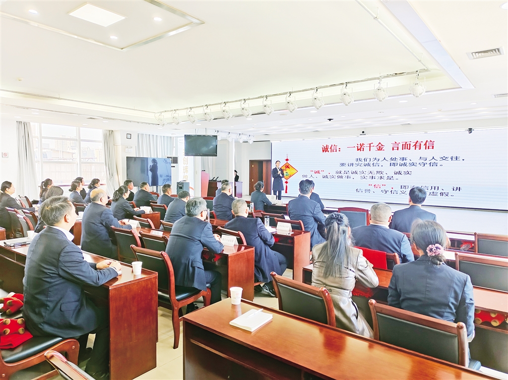 本網(wǎng)訊(記者 唐正飛 通訊員 楊光婷)“我們?yōu)槿颂幨、與人交往,要講究誠信,即誠實守信……”11月21日,中國工商銀行安康分行會議室一場“以誠立身,以信致遠”主題宣講會正在火熱進行。工作人員化身誠信“宣講員”,解讀“誠信”內(nèi)涵,分享踐行誠信故事。