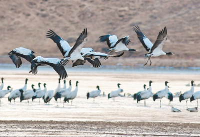 林周縣是著名的黑頸鶴越冬地,每年10月中旬開始,有大批黑頸鶴遷徙到此。據(jù)介紹,2017年12月,林周縣黑頸鶴數(shù)量穩(wěn)定在1700只左右,最高達2000只左右。VSp安康新聞網(wǎng)