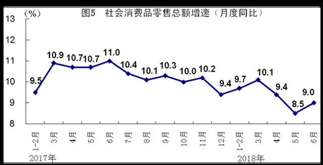 上半年,全國(guó)居民人均消費(fèi)支出9609元,同比名義增長(zhǎng)8.8%,比一季度加快1.2個(gè)百分點(diǎn),扣除價(jià)格因素實(shí)際增長(zhǎng)6.7%,加快1.3個(gè)百分點(diǎn)。其中,城鎮(zhèn)居民人均消費(fèi)支出名義增長(zhǎng)6.8%,加快1.1個(gè)百分點(diǎn);農(nóng)村居民人均消費(fèi)支出名義增長(zhǎng)12.2%,加快1.2個(gè)百分點(diǎn)。上半年,社會(huì)消費(fèi)品零售總額180018億元,同比增長(zhǎng)9.4%,增速比一季度回落0.4個(gè)百分點(diǎn)。按經(jīng)營(yíng)單位所在地分,城鎮(zhèn)消費(fèi)品零售額154091億元,增長(zhǎng)9.2%;鄉(xiāng)村消費(fèi)品零售額25927億元,增長(zhǎng)10.5%。按消費(fèi)類型分,餐飲收入19457億元,增長(zhǎng)9.9%;商品零售160561億元,增長(zhǎng)9.3%。消費(fèi)升級(jí)類商品銷售增長(zhǎng)較快,限額以上單位家用電器和音像器材類、通訊器材類和化妝品類同比分別增長(zhǎng)10.6%、10.6%和14.2%,分別比上年同期加快0.2、0.5和2.9個(gè)百分點(diǎn)。6月份,社會(huì)消費(fèi)品零售總額同比增長(zhǎng)9.0%,比上月加快0.5個(gè)百分點(diǎn)。
