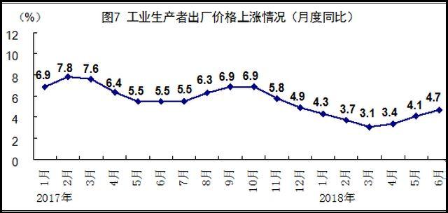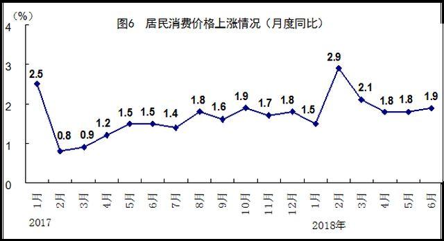 上半年,全國(guó)居民消費(fèi)價(jià)格同比上漲2.0%,漲幅比一季度回落0.1個(gè)百分點(diǎn)。分類別看,食品煙酒價(jià)格同比上漲1.4%,衣著上漲1.1%,居住上漲2.3%,生活用品及服務(wù)上漲1.6%,交通和通信上漲1.2%,教育文化和娛樂上漲2.1%,醫(yī)療保健上漲5.5%,其他用品和服務(wù)上漲1.1%。6月份,全國(guó)居民消費(fèi)價(jià)格同比上漲1.9%,漲幅比上月擴(kuò)大0.1個(gè)百分點(diǎn),環(huán)比下降0.1%。上半年,全國(guó)工業(yè)生產(chǎn)者出廠價(jià)格同比上漲3.9%,漲幅比一季度擴(kuò)大0.2個(gè)百分點(diǎn);全國(guó)工業(yè)生產(chǎn)者購(gòu)進(jìn)價(jià)格同比上漲4.4%。6月份,全國(guó)工業(yè)生產(chǎn)者出廠價(jià)格同比上漲4.7%,漲幅比上月擴(kuò)大0.6個(gè)百分點(diǎn),環(huán)比上漲0.3%;全國(guó)工業(yè)生產(chǎn)者購(gòu)進(jìn)價(jià)格同比上漲5.1%,環(huán)比上漲0.4%。