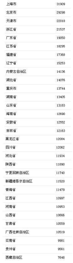 前三季度31省區(qū)市人均可支配收入。來自國家統(tǒng)計(jì)局