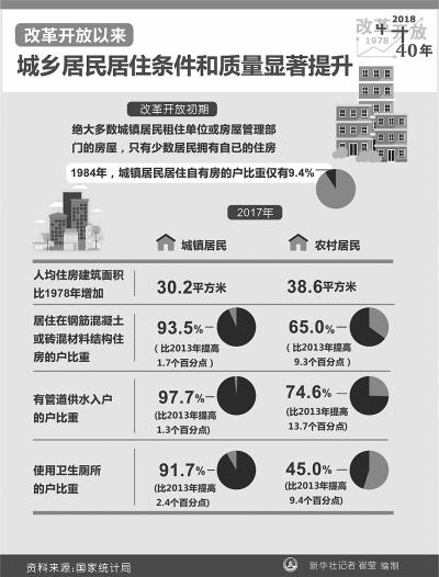改革開放40年,我國城鄉(xiāng)居民從吃穿住用的品質(zhì),到能夠享受的醫(yī)療教育服務(wù)水平,都發(fā)生著重大的變化,生活質(zhì)量不斷提升,食品支出比重明顯下降,服裝時尚化,耐用消費(fèi)品升級換代。移動電話、計(jì)算機(jī)、汽車走入尋常百姓家。2017年,城鎮(zhèn)居民平均每百戶擁有移動電話235部,計(jì)算機(jī)80.8臺,家用汽車37.5輛;農(nóng)村居民平均每百戶擁有移動電話246部,計(jì)算機(jī)29.2臺,家用汽車19.3輛。