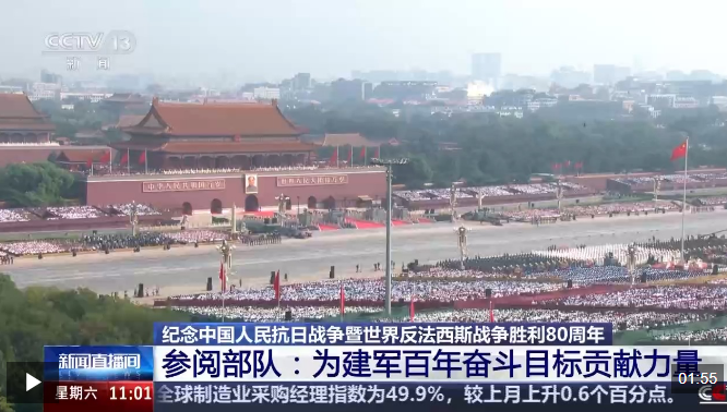 紀念中國人民抗日戰(zhàn)爭暨世界反法西斯戰(zhàn)爭勝利80周年大會9月3日隆重舉行。受閱部隊作為共和國武裝力量的代表,光榮接受了黨和人民的檢閱。中央軍委主席習近平簽署通令,嘉獎參閱全體人員。廣大參閱官兵備受鼓舞,一致表示,一定不負習主席重托,為如期實現(xiàn)建軍一百年奮斗目標、加快把人民軍隊建成世界一流軍隊不懈奮斗。