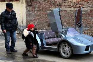 鄭州大爺自造“蘭博基尼”送孫子