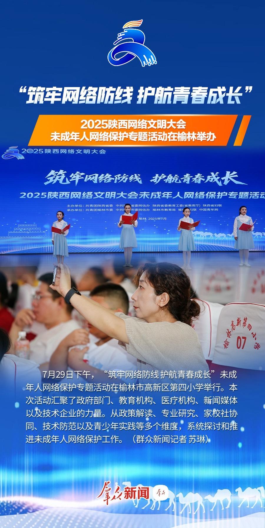 7月29日下午,“筑牢網(wǎng)絡(luò)防線 護(hù)航青春成長(zhǎng)”2025陜西網(wǎng)絡(luò)文明大會(huì)未成年人網(wǎng)絡(luò)保護(hù)專題活動(dòng)在榆林高新第四小學(xué)舉辦。