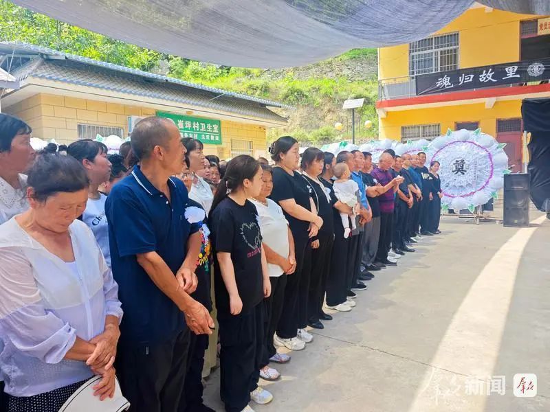 7月31日下午,在李靜毅的家鄉(xiāng)崔坪村,自發(fā)趕來的鄉(xiāng)親們排成長隊,迎接英雄魂歸故里。