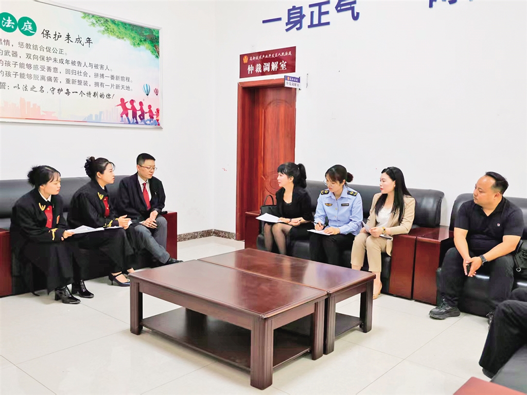 高新法庭特邀人大代表、政協(xié)委員、市場監(jiān)管工作人員及科創(chuàng)園企業(yè)代表走進法庭,聯(lián)合開展調(diào)解工作。趙永佳 攝