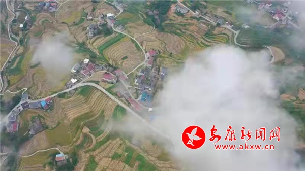 從空中俯瞰,在漫漫云海的覆蓋下,綿延數(shù)十公里的古梯田,層層環(huán)抱著山脊,從山腳盤繞到山頂,其線條如行云流水,其規(guī)模磅礴壯觀,與青山相互交融,盡顯自然和諧。走在田間的小道上,稻香撲面而來(lái),粒粒飽滿的稻穗隨風(fēng)搖曳,村民們正搶抓晴好天氣,忙著收割、打粒、裝袋。放眼望去,金黃的稻田、翠綠的山巒和勤勞的村民勾勒出一幅優(yōu)美的豐收畫卷。