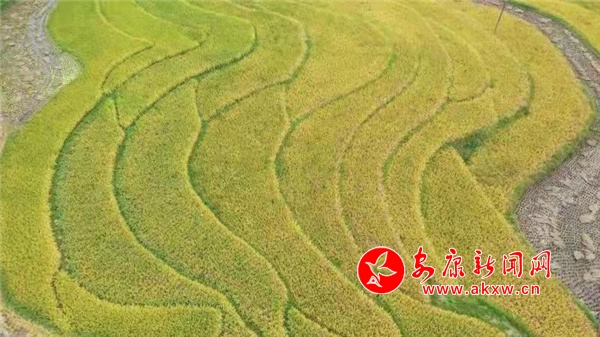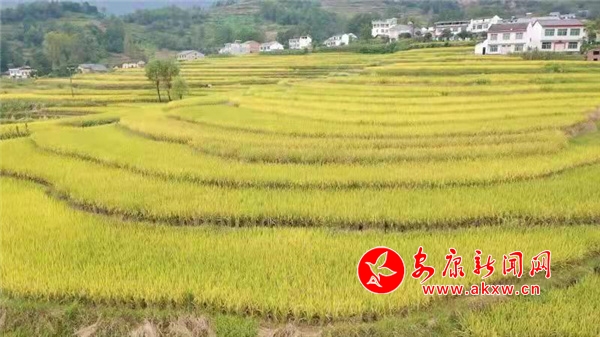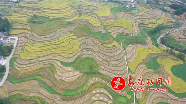 本網(wǎng)訊(通訊員 黃智發(fā) 王建霞)金秋時(shí)節(jié),漢陰縣鳳堰古梯田的水稻進(jìn)入成熟期。在青山白云映襯下,層層疊疊的梯田翻起金色的稻浪,美如畫卷。