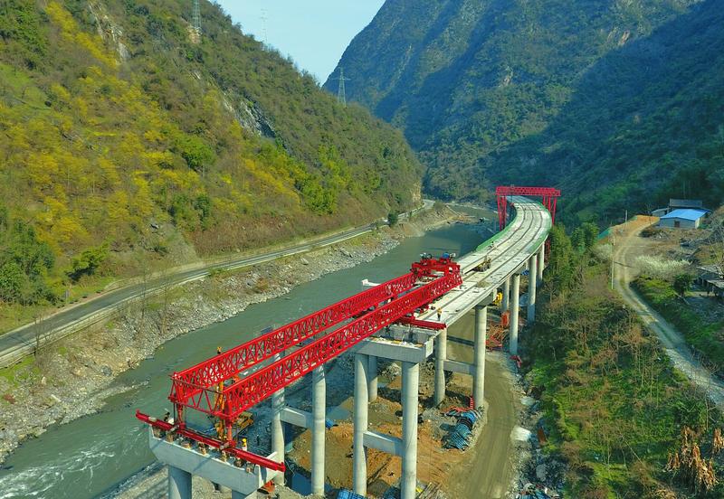 安康至嵐皋高速公路建設(shè)順利推進(jìn)。該高速公路是國家高速公路網(wǎng)G69銀百線的組成部分。圖為該高速公路八標(biāo)段正在架設(shè)長2公里的嵐河高架橋。陜西日報(bào)記者 巨躍先攝……
