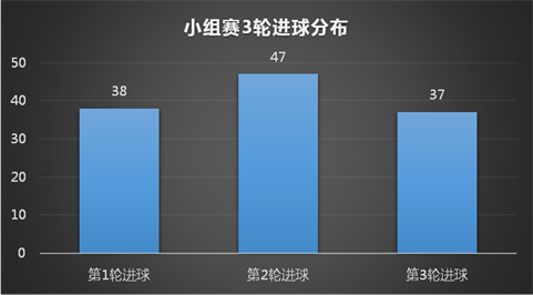 本屆世界杯小組賽共打入了122粒進(jìn)球,場均2.54粒入球,三輪的進(jìn)球分別是:38、47、37。顯然,小組賽的第2輪成為小組出線的關(guān)鍵性戰(zhàn)役,打入了3輪中最多進(jìn)球,而“各懷鬼胎”的第3輪,各隊(duì)顯得“無心戀戰(zhàn)”。