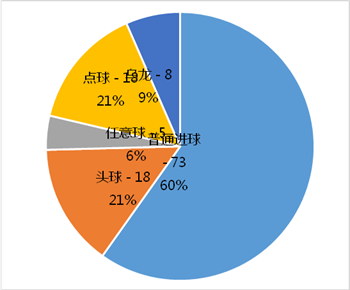 本屆世界杯關(guān)于進(jìn)球的另一個感受就是點(diǎn)球的增加,由于VAR視頻助理裁判技術(shù)的引入,本屆世界杯小組賽共打進(jìn)了18粒點(diǎn)球,而任意球直接破門也有5粒,均超過了上屆世界杯;而從進(jìn)球方式來看,定位球(直接任意球和點(diǎn)球)的直接破門共有23粒,依靠定位球(任意球和角球)戰(zhàn)術(shù)打入的進(jìn)球有27粒,而依靠運(yùn)動戰(zhàn)打入的進(jìn)球有72粒;