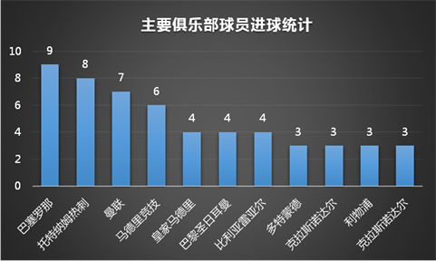 而俱樂部方面,巴塞羅那俱樂部所屬球員打入了9個進(jìn)球,是世界杯進(jìn)球數(shù)最多的俱樂部,排名第2-4位的俱樂部是托特納姆熱刺(8個)、曼聯(lián)(7個)、馬德里競技(6個)。而巴塞羅那與眾不同的地方在于,其他幾個俱樂部是靠著射手榜前列的球員撐起總進(jìn)球數(shù),而巴薩則是由6名球員完成的9粒進(jìn)球。